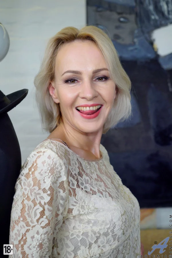 Голые фото зрелой, худенькой женщины с маленькими сиськами, которая смело раздевается до конца и демонстрирует своё гладкое тело в откровенных позах — улыбается, кокетничает и соблазняет, демонстрируя крупным планом выбритую пи**ень и упругий анус.