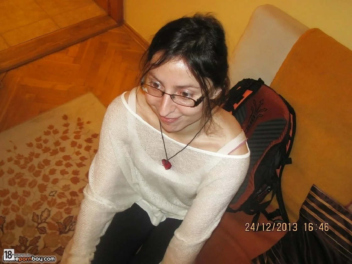 Пошлые фото очкастой худышки с маленькой грудью и волосатой киской! Смотри, как игривая бабенка позирует голой дома перед мужем, чтобы завести его по полной!